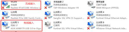 使用无线接入就选择无线网卡,使用有线接入就选择有线网卡。