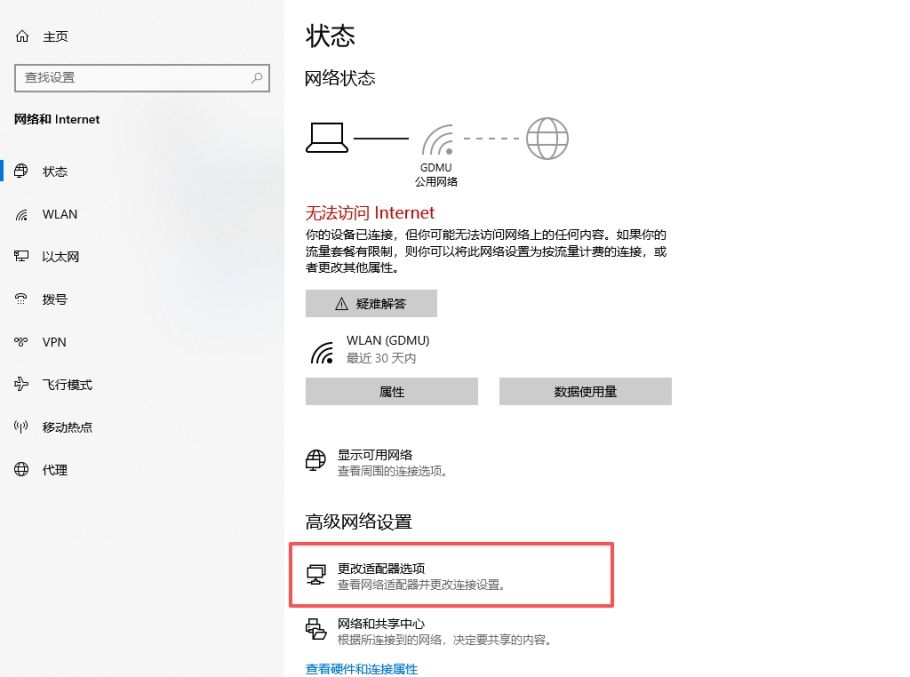 选择“更改适配器”,