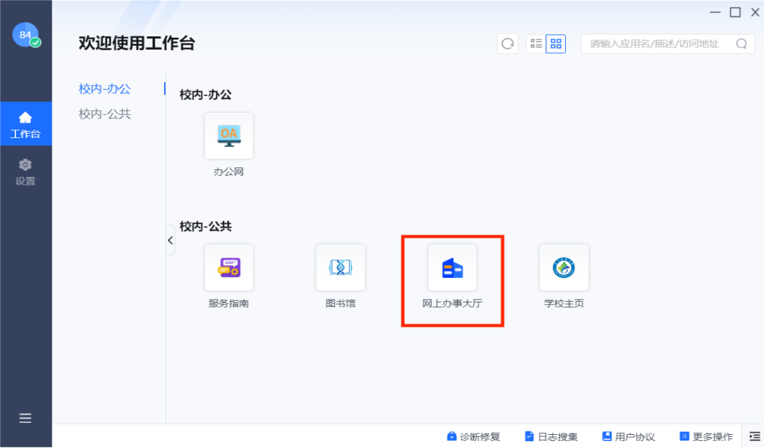 1. 用户电脑端登录VPN后,可一键登录学校网办大厅,无需再重复登录。