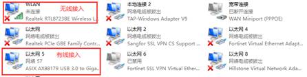 使用无线接入就选择无线网卡,使用有线接入就选择有线网卡。