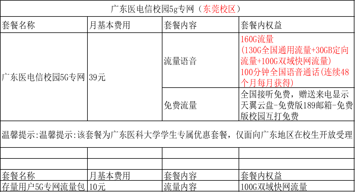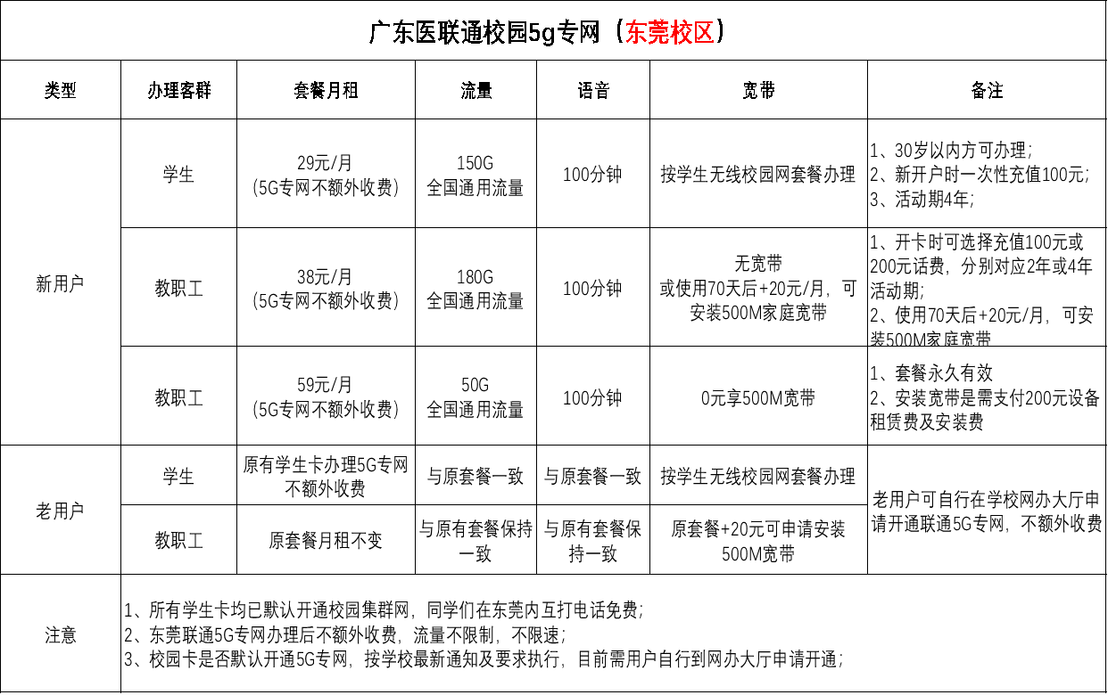 (2)东莞联通联系人:黄经理 18507691699,东莞校区新开户的资费如下: