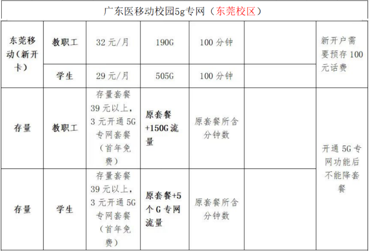 (2)东莞移动联系人:卢经理 13922995673,东莞校区新开户的资费如下: