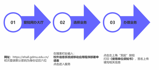 该流程可用于本部门申请校外信息系统或移动应用程序部署,服务对象为在校教职工。